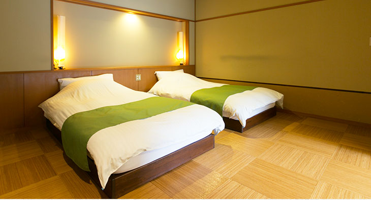 湯の山温泉の鹿の湯ホテルに連泊、バリアフリー部屋を利用、温泉は貸切風呂を2日間ともに楽しめます。