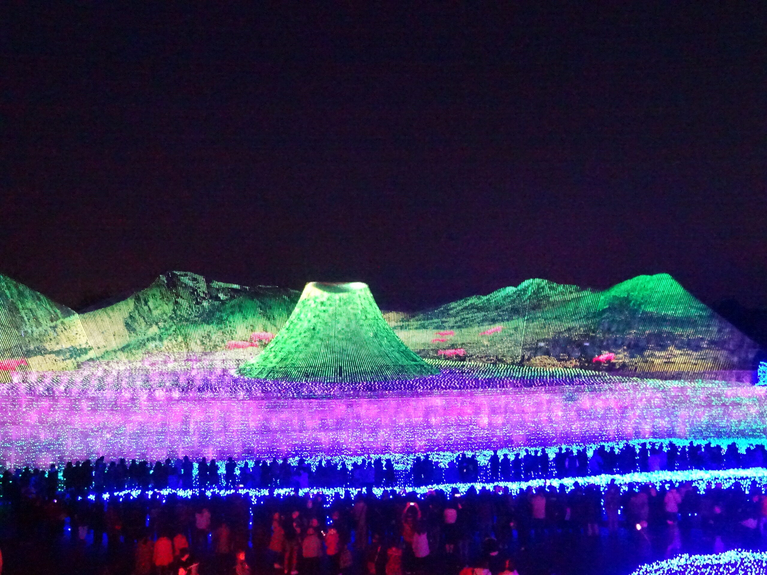 人気のなばなの里のイルミネーションは「絶景美の大パノラマ(高さ35・横幅155m)の演出を楽しめました。