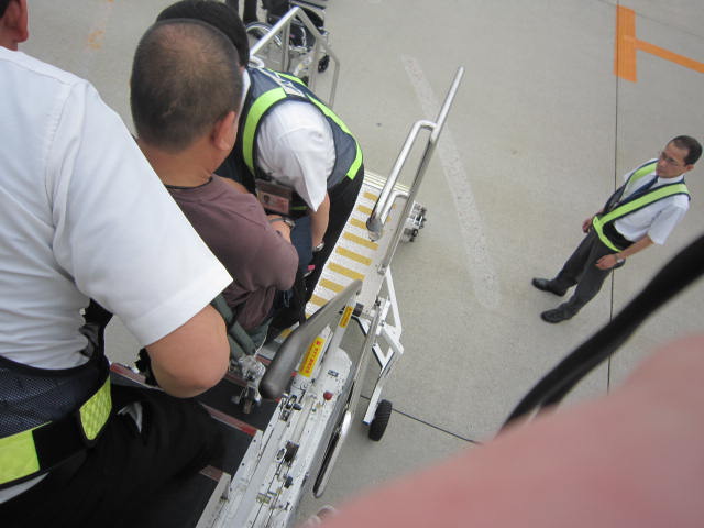 ⑦機内出口から係員の案内で荷物受け取り場所へ