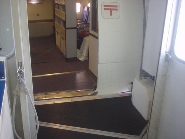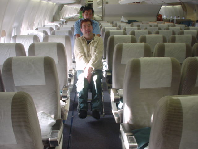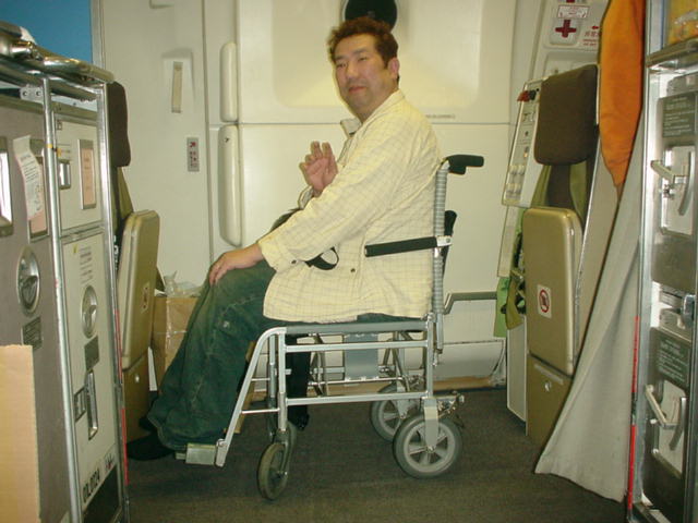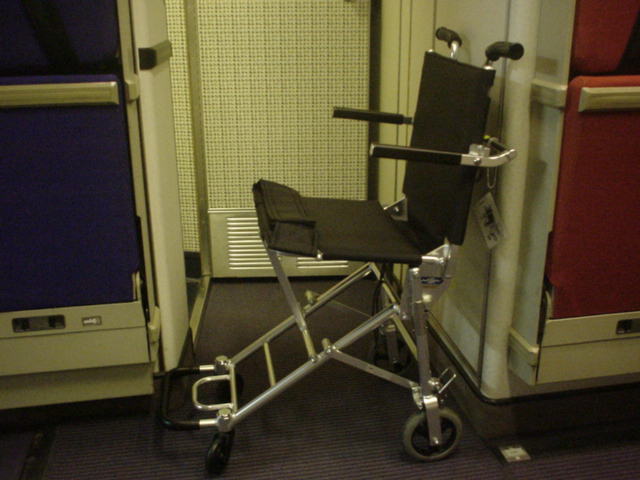 ④機内に入り車椅子外車輪を外して通路移動でお席へ移動