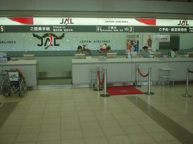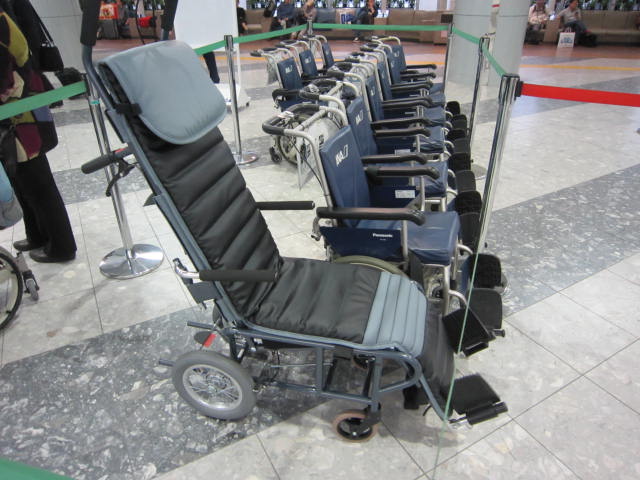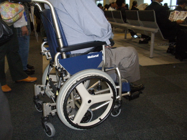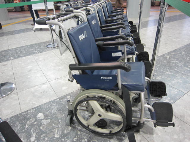 ①出発90分前にカウンターで手続きと全体合わせ(貸出車椅子と預ける車椅子や荷物確認)