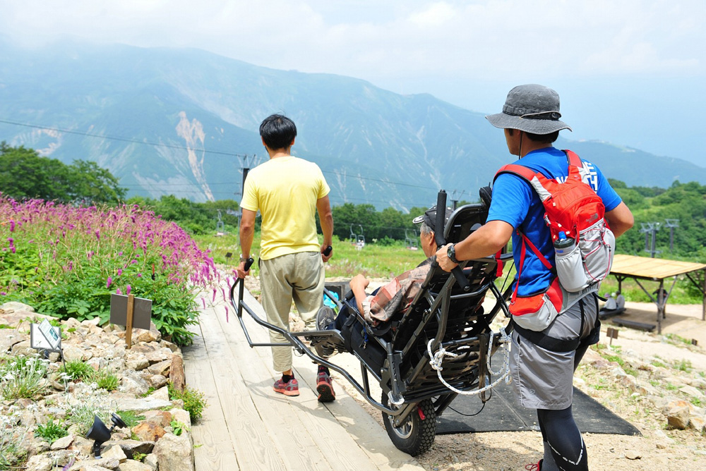 ◆白馬五竜高山植物園で「トレイルライダー(山岳用車椅子)を使い専任スタッフの案内で高山植物(アルプス・ヒマラヤの高山植物など)の鑑賞を楽しめます。