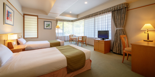 磐梯熱海温泉のホテル華の湯、洋室利用、バリアフリー部屋もお選びいただけます。貸切風呂もお楽しみ下さい。