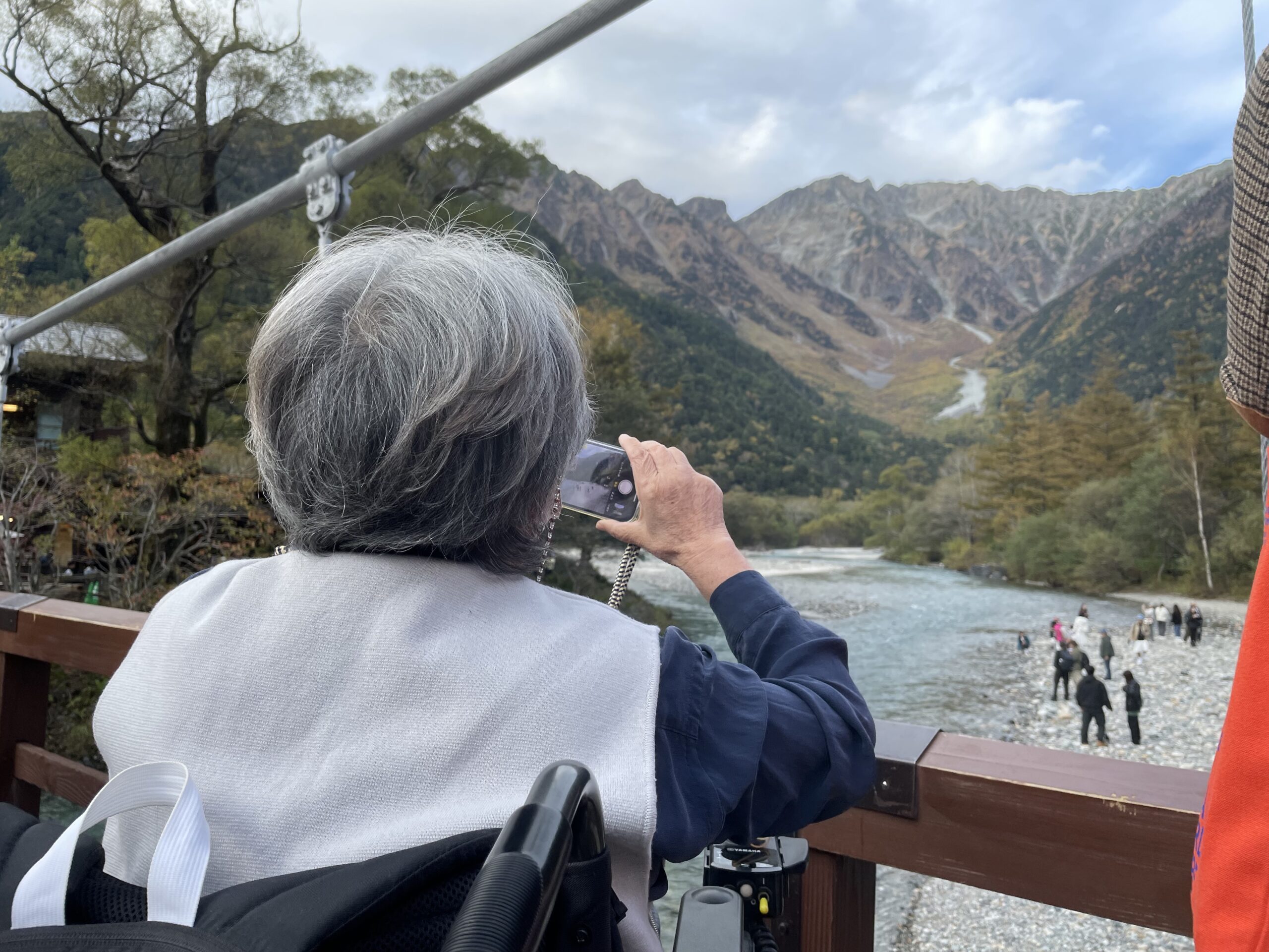 上高地・北アルプスの大自然を見たいと簡易電動車椅子でツアー参加「上高地・北アルプス・穂高連峰の絶景」。JR車椅子専用席と駅係員の案内、リフト付きタクシーで車椅子ごと車内へ入れて快適移動、絶景の上高地・北アルプスの景色も見られて堪能できました。
