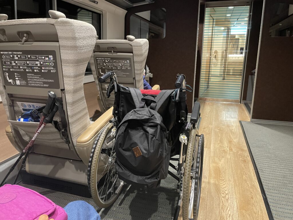 小型タクシー4名乗りを2名で利用、折り畳み車椅子は1台です。