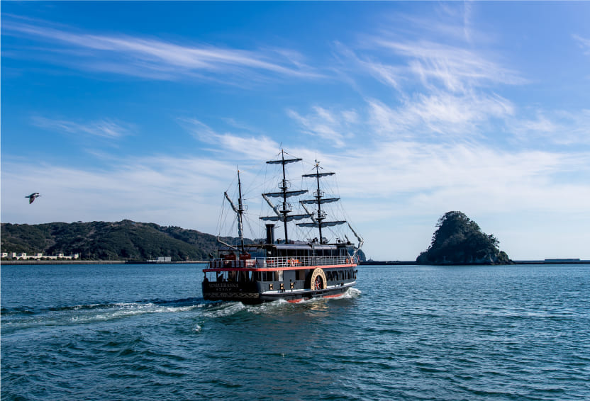 白浜海岸や下田観光は了仙寺・ペリー上陸跡など、観光列車「サフィール号」の観光をお楽しみいただけます。