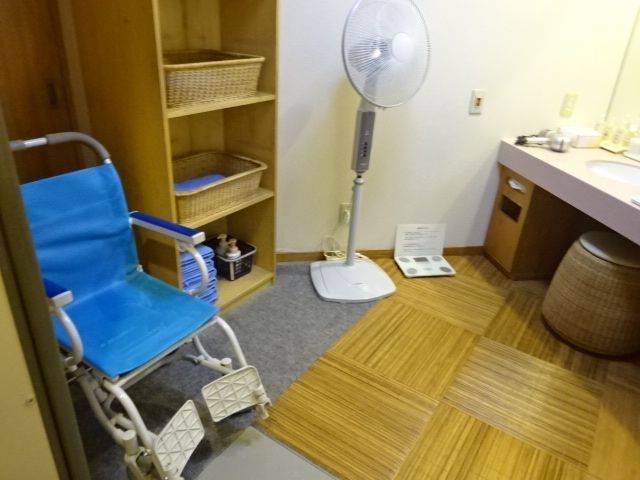 人気の登別温泉の大浴場で入浴用車椅子を利用し温泉を安心快適に楽しんでいただけます。