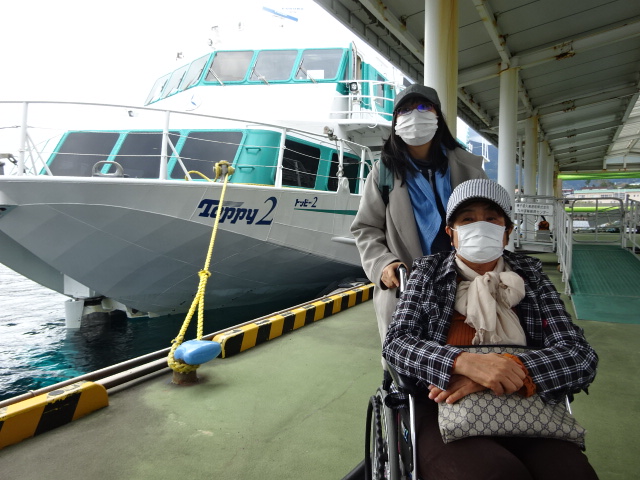 車椅子のままスロープで船内入れ、多目的的トイレもあり、席は入り口近くの通路席を事前予約すると便利です。車椅子専用席のある便もあります。