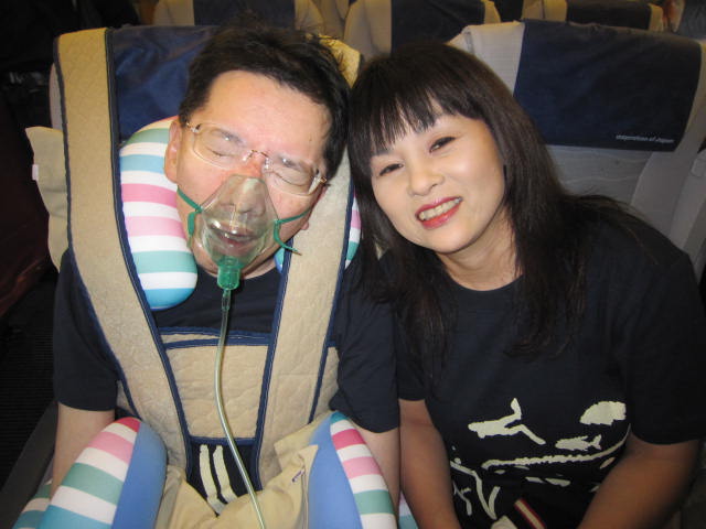 ④機内に入り車椅子外車輪を外して通路移動でお席へ移動