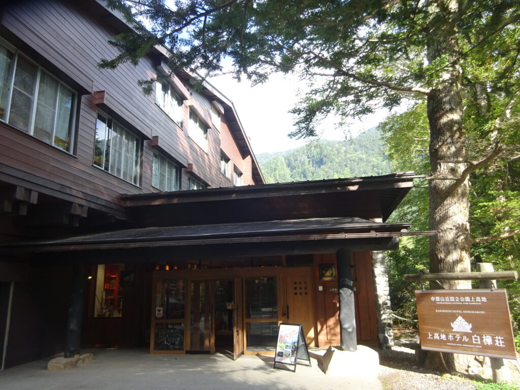 上高地の人気のホテル白樺荘で河童橋のそば、館内には多目的トイレあり、お部屋は洋室を利用、車椅子は下足場まで、お部屋から絶景の北アルプス穂高連山をのんびり眺めていただけます。
