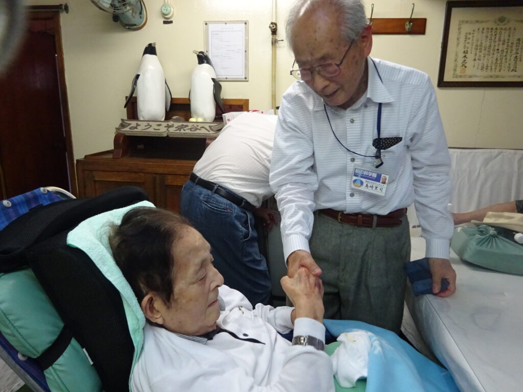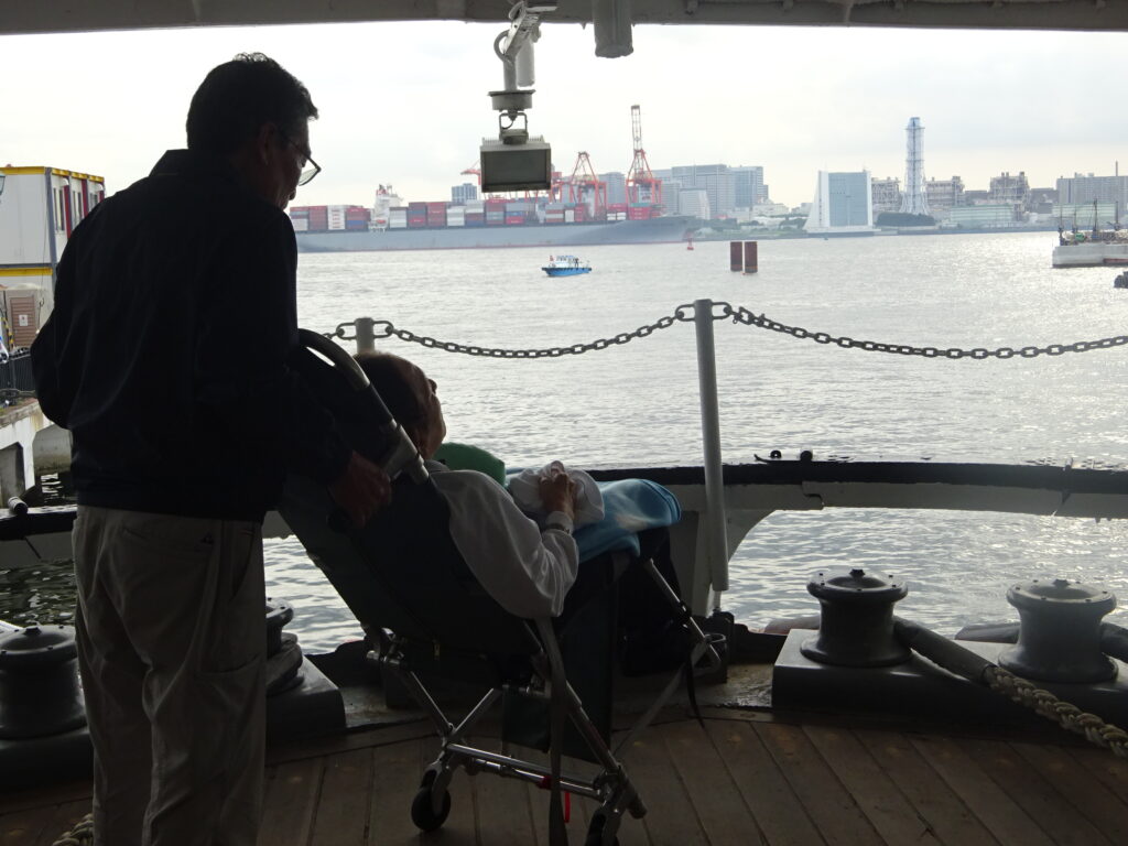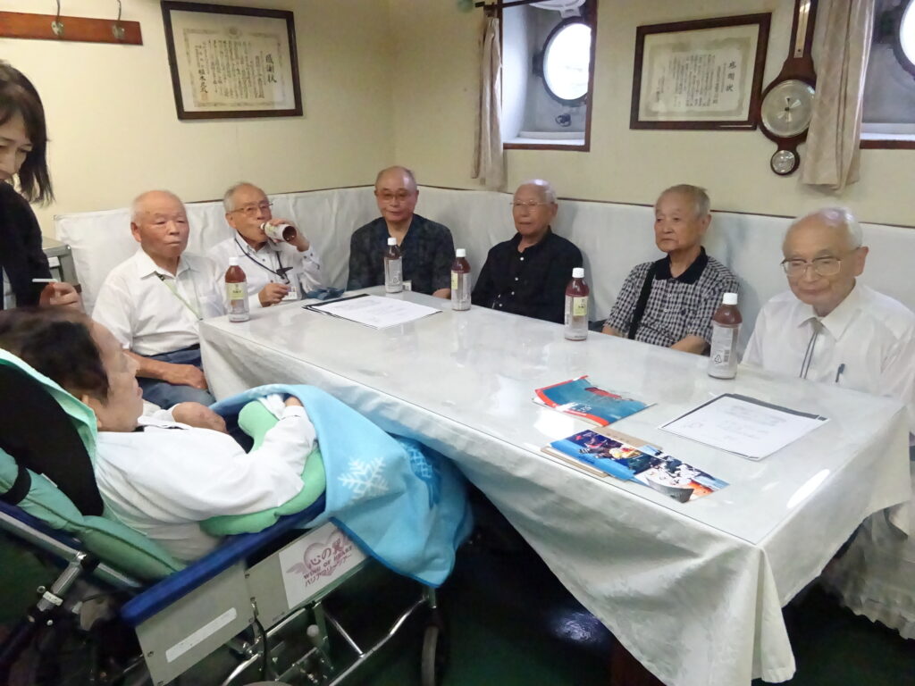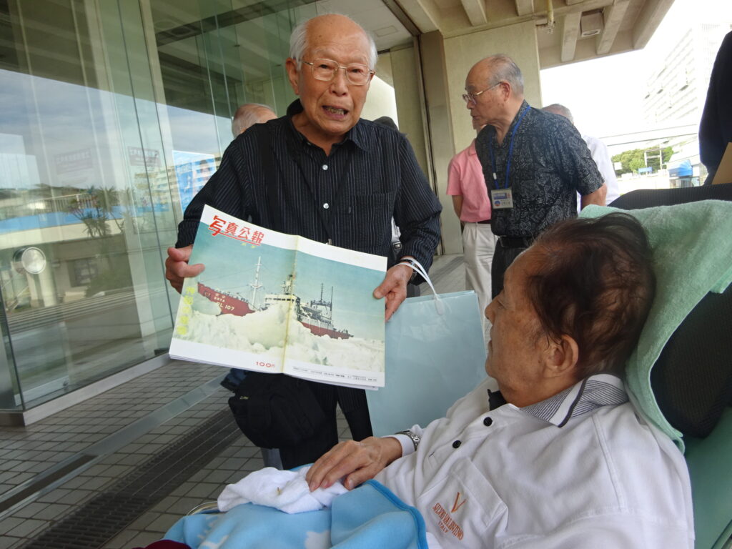 車椅子生活の元南極観測隊員の願い。「南極観測船宗谷号の通信室と60年ぶりの船友に再開したい!」心の翼へ依頼、車椅子生活で有料老人ホームに入所のU様は、車椅子では宗谷号は利用できないのですが特別な申請をされ、心の翼は階段避難車椅子を搬入し介助の支援で、通信室の入室と元隊員の船友と食堂室で懇談の許可をいただき、心の翼ヘルパーと看護師同行で再会を実現されました。(NHK放送の同行取材をいただきました)(広島県U様)