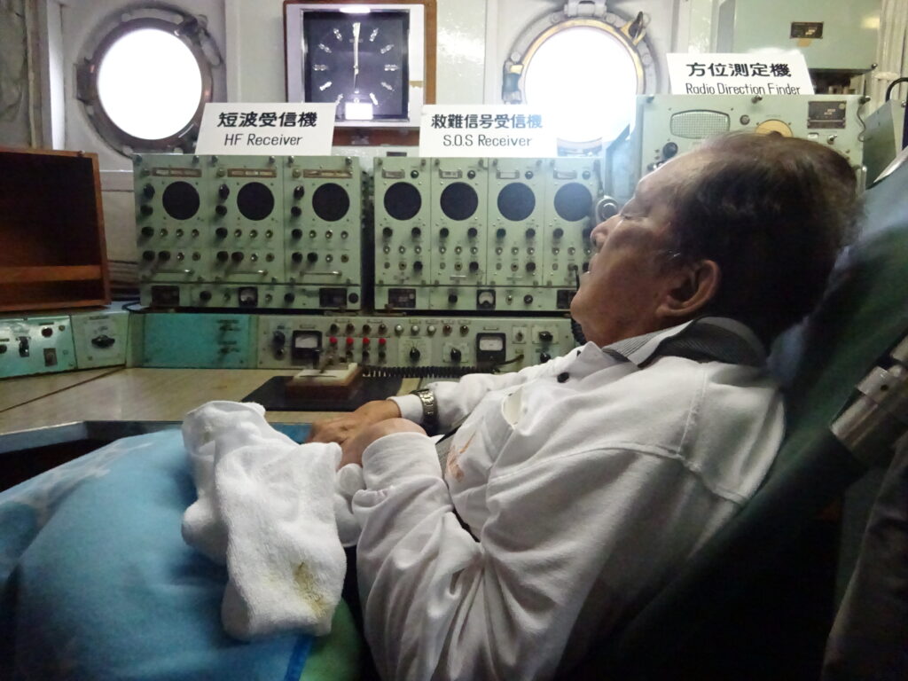 通信室で通信をされ、当時を想い浮べてらっしゃいます・・・
