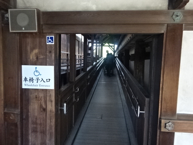 ※京都二条城は、砂利道を簡易電動車椅子、二の丸御殿は室内用車椅子利用