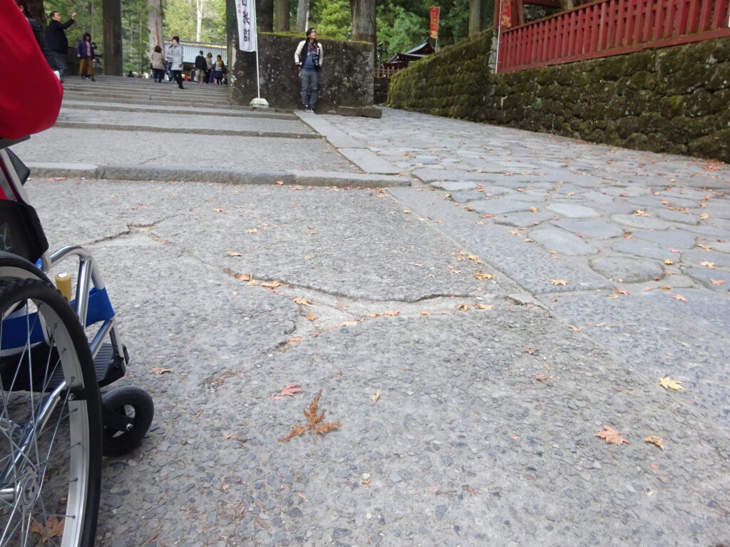 ※日光東照宮の路面状況(砂利・薄い段・凸凹坂道)